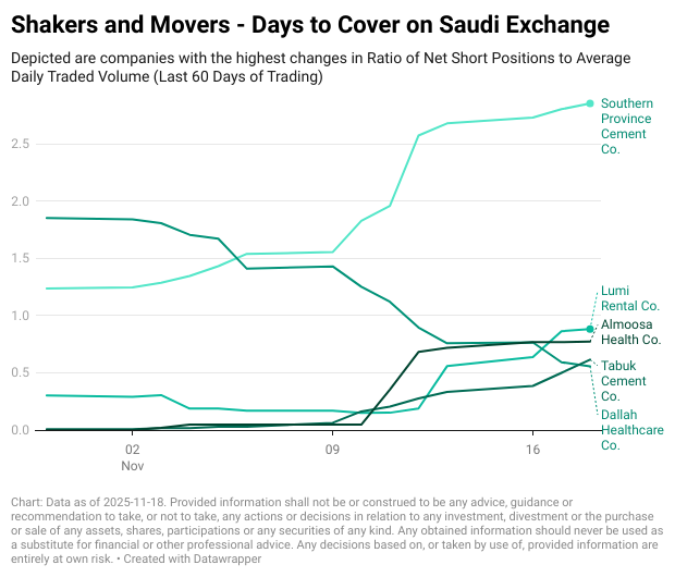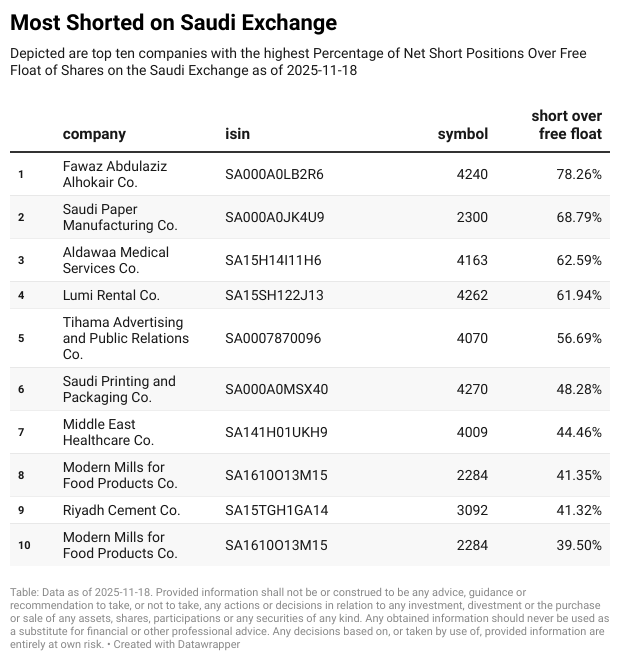 They show different aspects of short activity across the Saudi Stock Exchange (Tadawul):